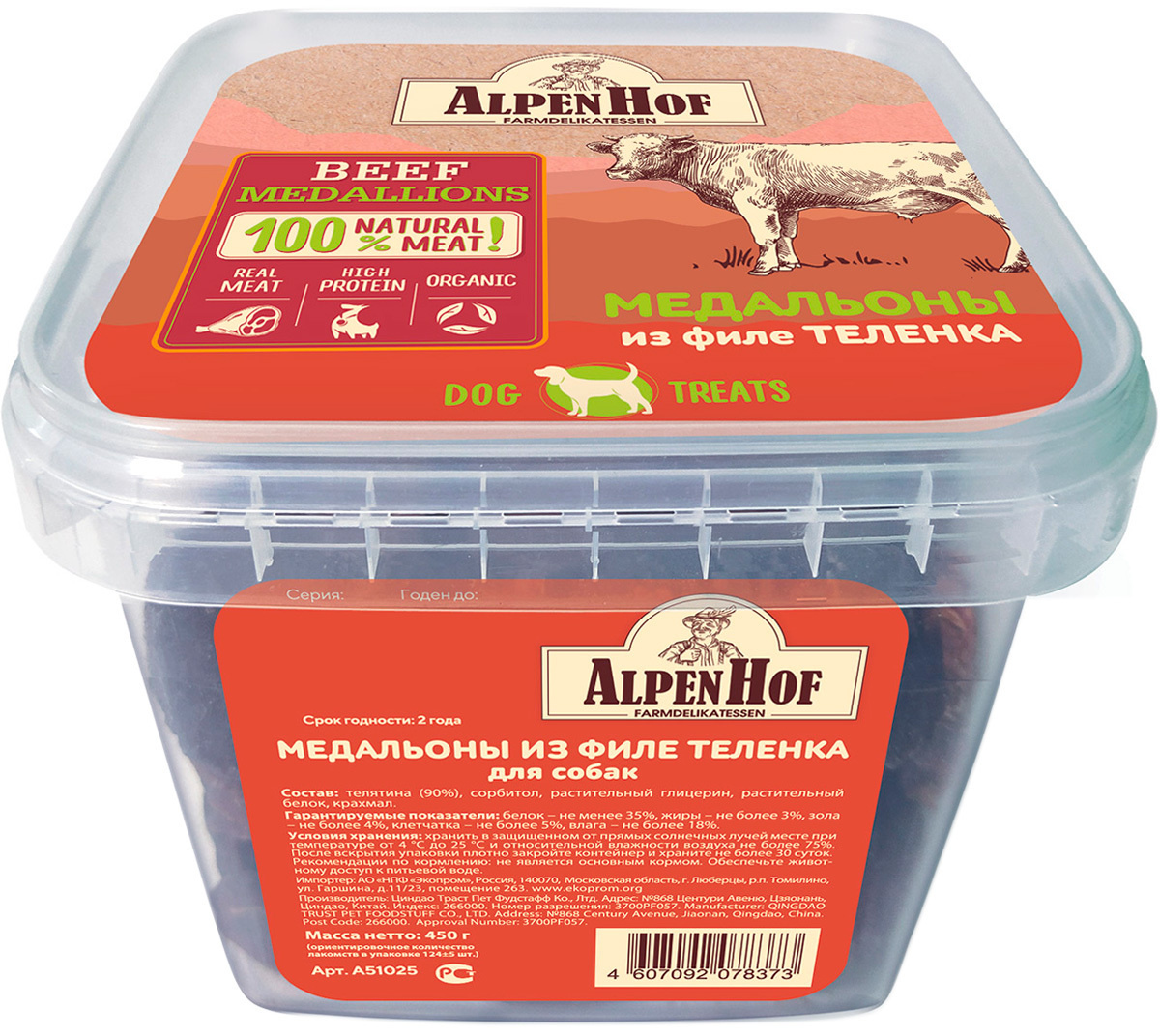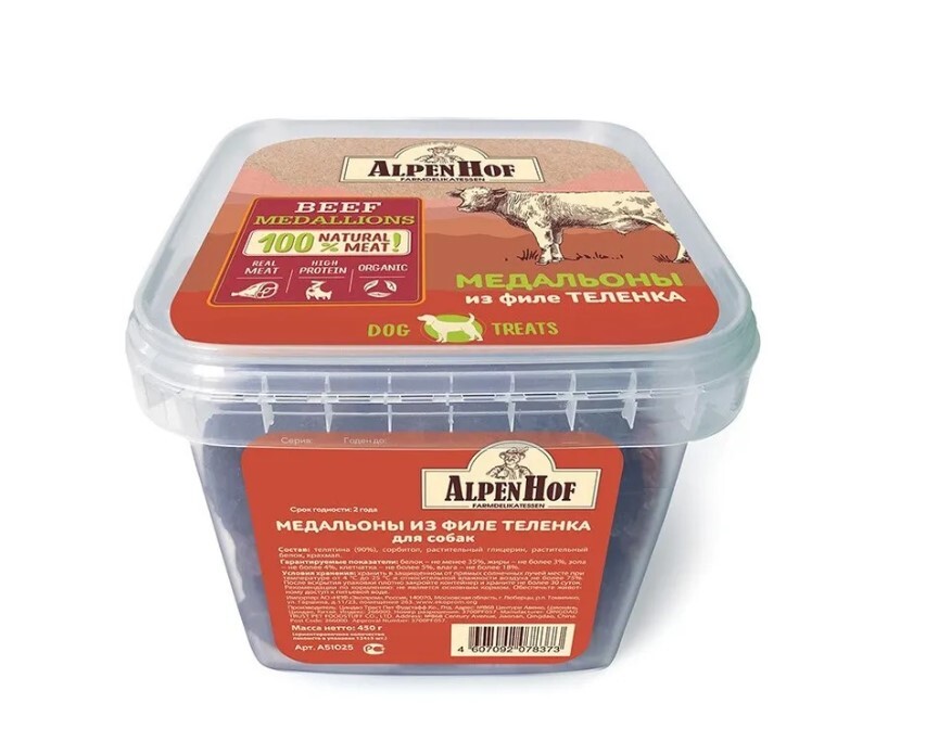 Состав: телятина (90%), сорбитол, растительный глицерин, растительный белок, крахмал.
