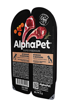 AlphaPet 100г "Superpremium" Влажный корм для щенков, ягненок и морковь