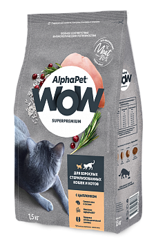 Alphapet 1,5кг "WOW" Сухой корм для стерилизованных кошек, цыпленок