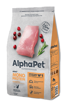 Alphapet 3кг "Superpremium" Monoprotein Сухой корм для взрослых кошек, индейка