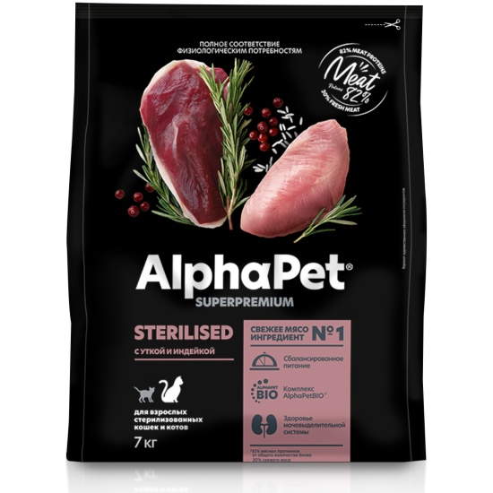 Alphapet 7кг "Superpremium"Сухой корм для стерилизованных кошек, утка и индейка