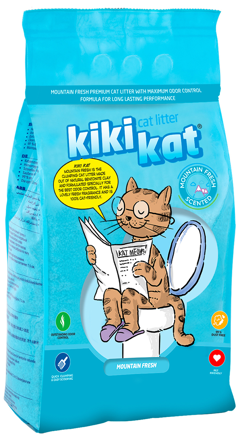 Наполнитель KikiKat для кошек, бентонитовый, супер-белый, комкующийся, с ароматом "Горная свежесть"