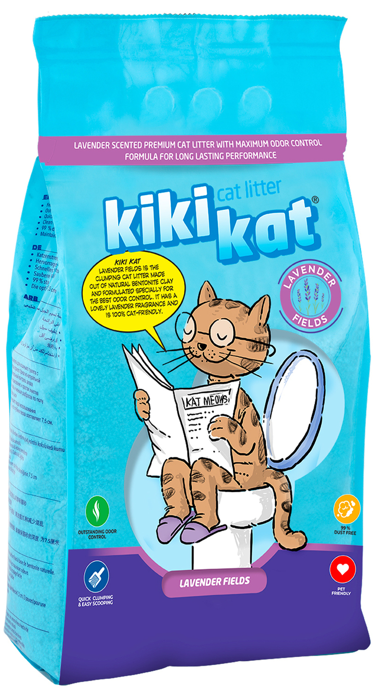 Наполнитель KikiKat для кошек, бентонитовый, супер-белый, комкующийся, с ароматом "Лаванда"