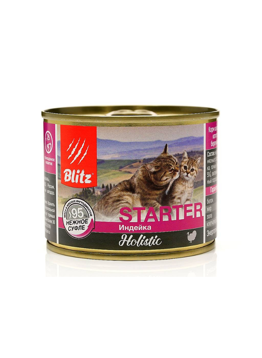 Состав: Индейка и субпродукты (не менее 47%), мясные субпродукты (лёгкое, печень, селезёнка, почки) (не менее 45%), молоко (не менее 5%), витамины и минеральные вещества, яичный порошок, рыбий жир.