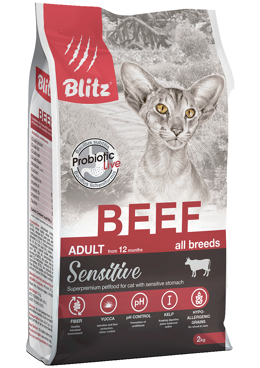 Blitz 2кг Sensitive Beef Сухой корм для взрослых кошек Говядина
