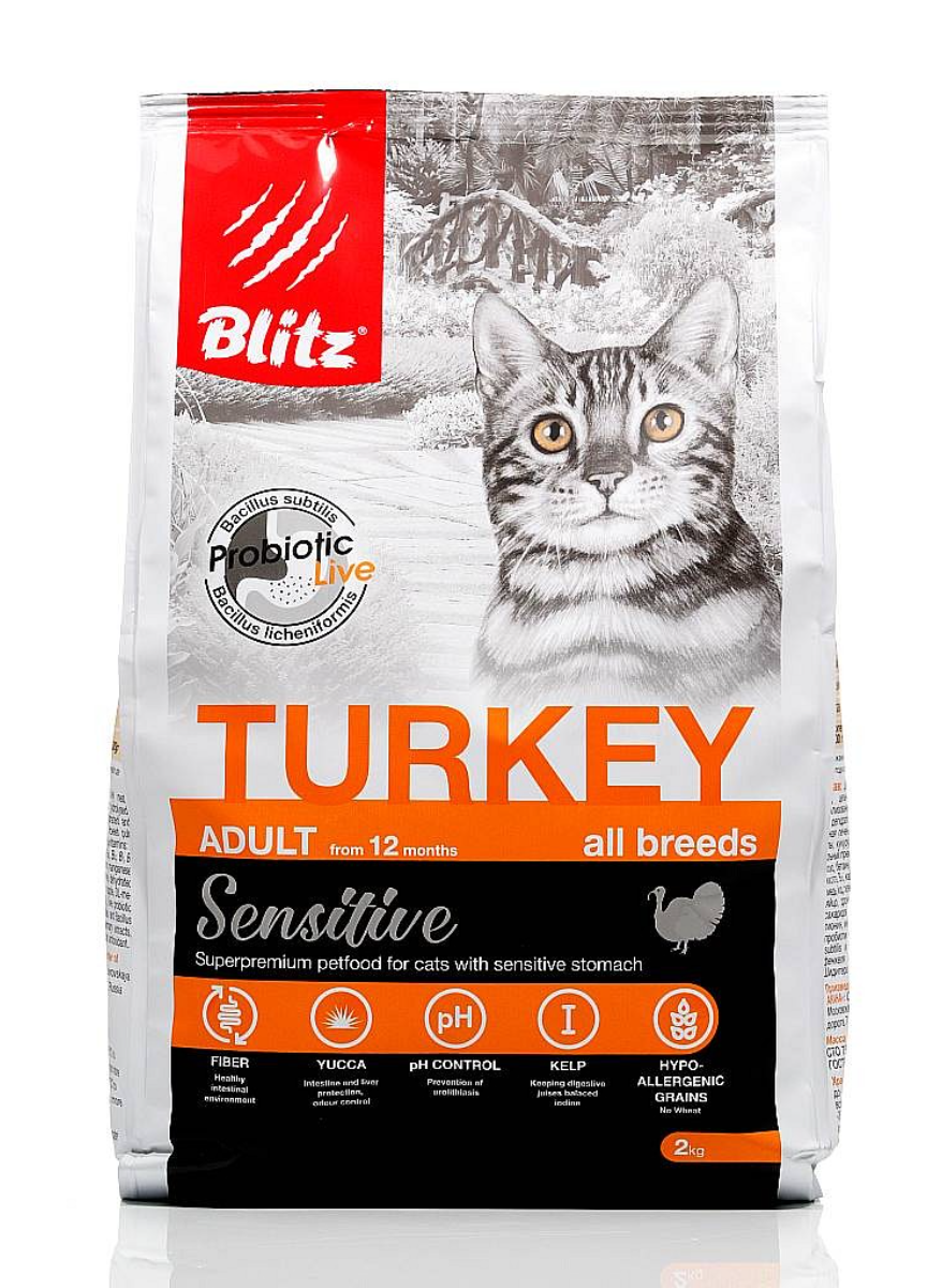 Blitz 2кг Sensitive Turkey Сухой корм для взрослых кошек Индейка