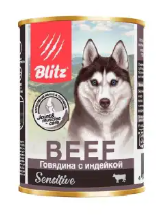 Состав: говядина и индейка (не менее 42%), мясные субпродукты (не менее 41%) (в т.ч.трахеи, селезенка, печень), рис (не более 6%), витамины и минералы, клетчатка, рыбий жир.