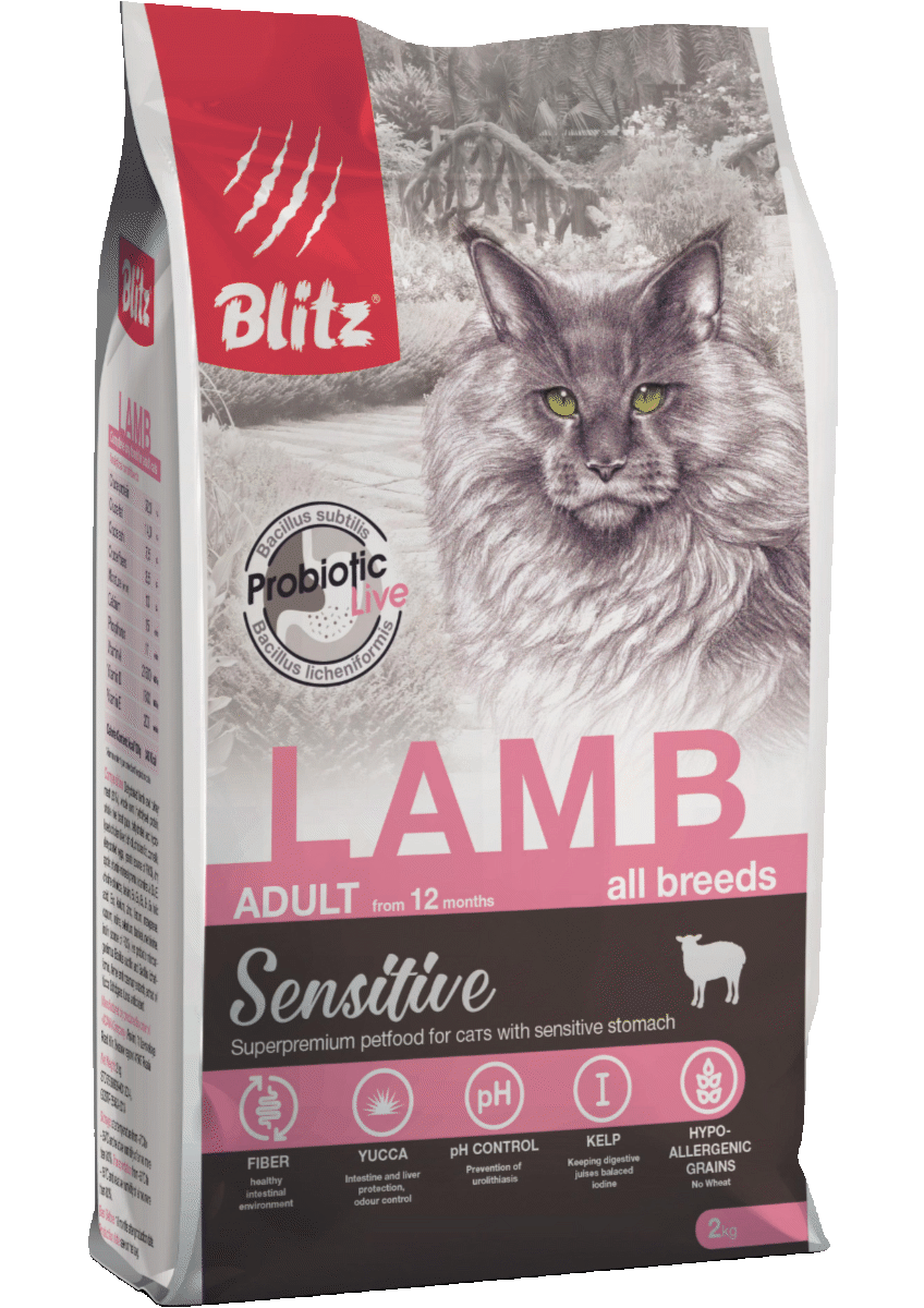 Blitz 400г Sensitive Lamb Сухой корм для взрослых кошек Ягненок