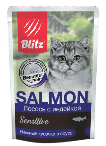 Полнорационный влажный корма для взрослых кошек «Лосось с индейкой» направлен на поддержание красоты и здоровья вашего питомца. Благодаря уникальному вкусовому сочетанию корм является привлекательным даже для привередливых кошек.