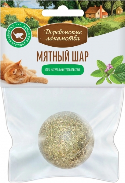 Эксклюзивная игрушка — лакомство для кошек из кошачьей мяты. Играть в нее не надоест никогда. В состав входят только кошачья мята и пчелиный воск, благодаря которому мята в шаре всегда остается свежей и, при каждом ударе лапой, запах становится сильнее. Диаметр шара — 3,5 см. Эту игрушку можно даже съесть. Она состоит только из натуральных ингредиентов, ваша кошка получит огромное удовольствие.