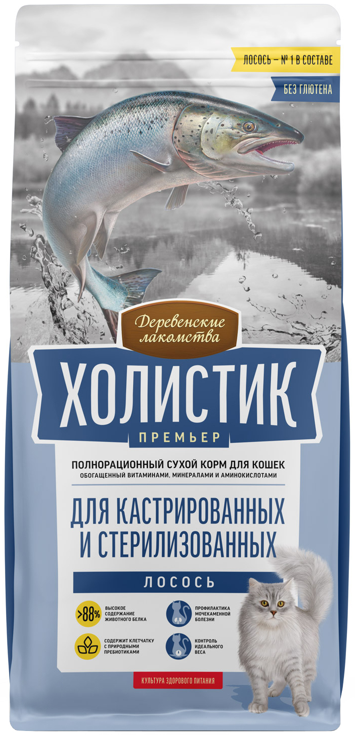 Серия полнорационных кормов Холистик Премьер «Для кастрированных и стерилизованных» разработана специально для котов и кошек, с особыми потребностями в рационе. Идеально сбалансированный, обогащенный необходимыми витаминами и аминокислотами, этот корм обеспечивает контроль за весом, поддерживает здоровье мочевыводящих путей и общего физического состояния.