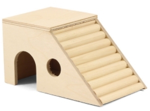 Деревянный домик-лестница для мелких грызунов: крыс, мышей, джунгариков, хомячков, песчанок и т.д. Несколько отверстий, в том числе большой вход и окошко, обеспечивают свободный доступ внутрь изделия. Крыша-лестница достаточно плотная - по ней зверек может забираться наверх. Эта модель прослужит грызуну очень долго, т.к. изготовлена из высококачественных материалов. В домике можно не только отдохнуть или подвигаться, но и поточить об него свои зубки. Изделие выполнено без окрашивания, поэтому его легко можно раскрасить или декорировать на свой вкус.