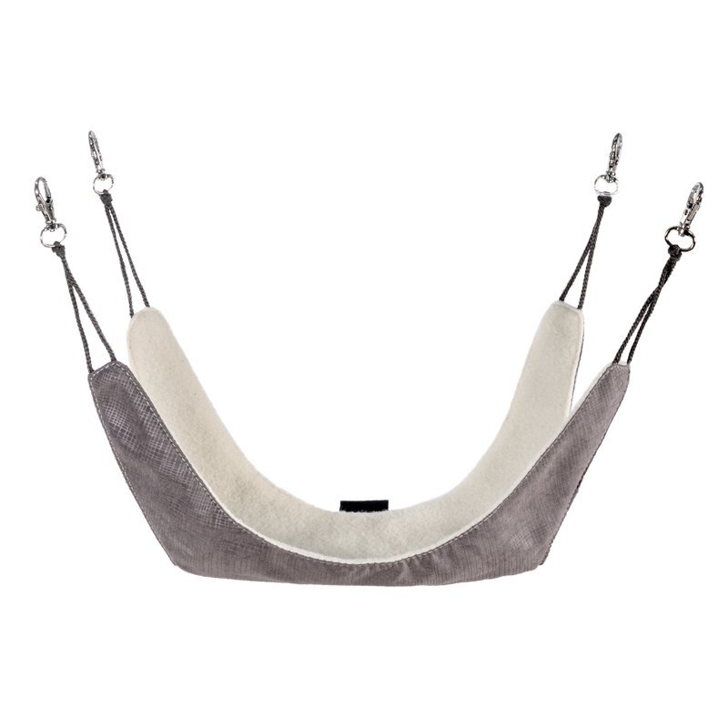 Этот мягкий и уютный подвесной гамак оборудован четырьмя прочными карабинами, при помощи которых его можно зафиксировать в любом положении внутри клетки. Благодаря функциональному и практичному велюру изделие прослужит максимально долго и не потускнеет даже после многократной стирки. Отделка гамака мягким флисом обеспечит питомцу уютный отдых, а оригинальная расцветка сделает его украшением любой клетки.