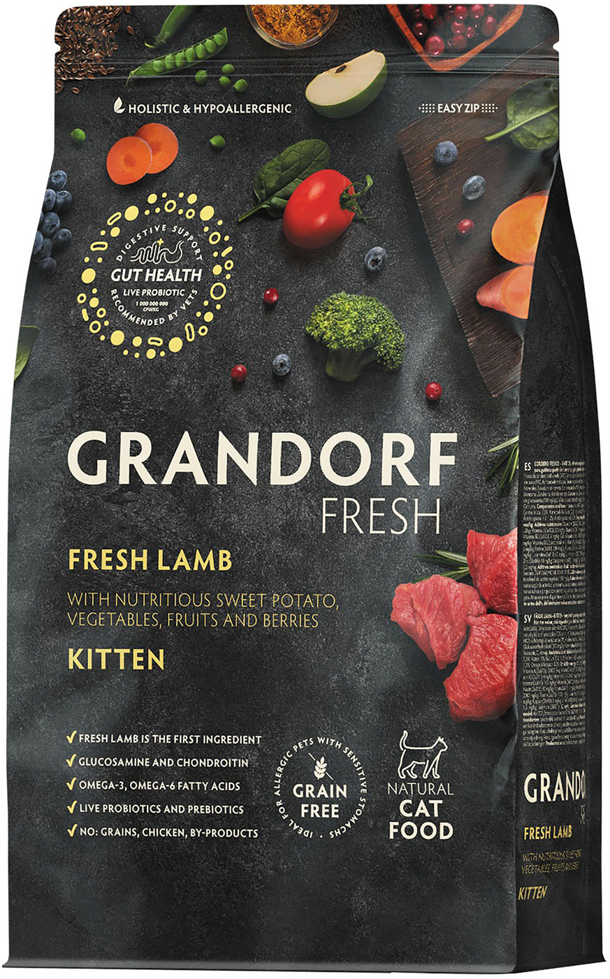 Корм Grandorf Fresh Holistic Lumb&Sweet Potato (беззерновой) для котят, свежее мясо ягненка с бататом, 400 г