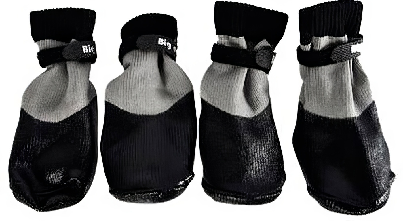 Стильный комплект резиновых сапожек для собак - незаменимый аксессуар индивидуальной защиты лап животного от воздействия агрессивных жидкостей, дорожных химреагентов. Прочные, комфортные и непромокаемые, они сохраняют лапы собаки чистыми и сухими в ненастную погоду и защищают их от истирания о твердое покрытие при длительных и интенсивных нагрузках.