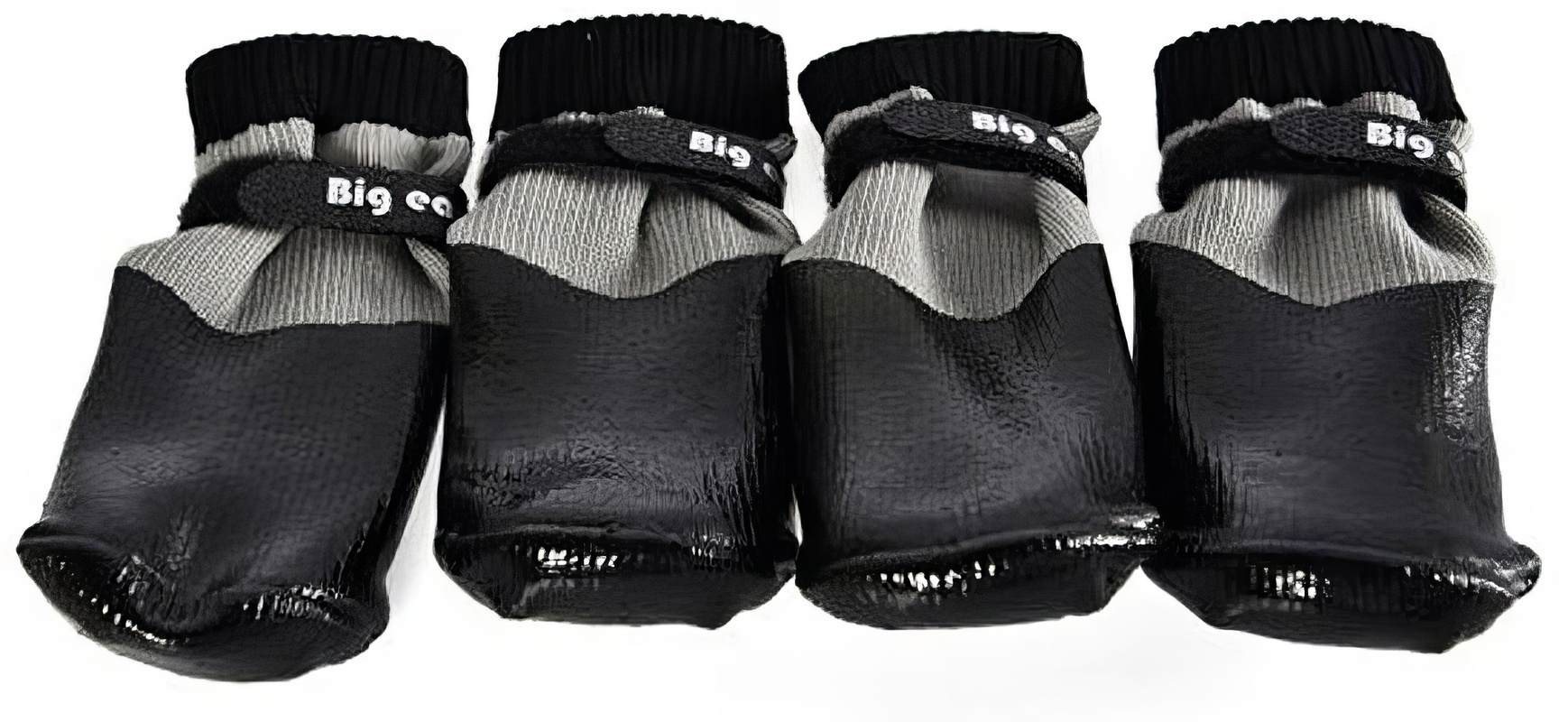 Стильный комплект резиновых сапожек для собак - незаменимый аксессуар индивидуальной защиты лап животного от воздействия агрессивных жидкостей, дорожных химреагентов. Прочные, комфортные и непромокаемые, они сохраняют лапы собаки чистыми и сухими в ненастную погоду и защищают их от истирания о твердое покрытие при длительных и интенсивных нагрузках.