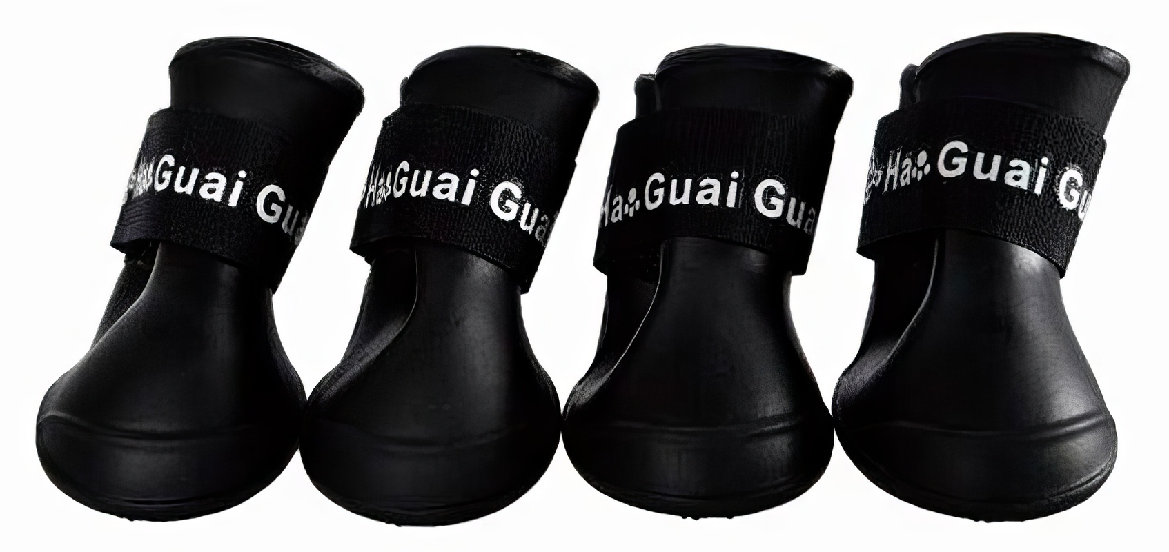 Стильный комплект резиновых сапожек для собак - незаменимый аксессуар индивидуальной защиты лап животного от воздействия агрессивных жидкостей, дорожных химреагентов. Прочные, комфортные и непромокаемые, они сохраненяют лапы собаки чистыми и сухими в ненастную погоду и защищают их от истирания о твердое покрытие при длительных и интенсивных нагрузках.