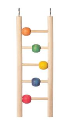 Игрушка для птиц в виде лестницы с пятью ступенями, украшенными цветными деревянными шариками.
