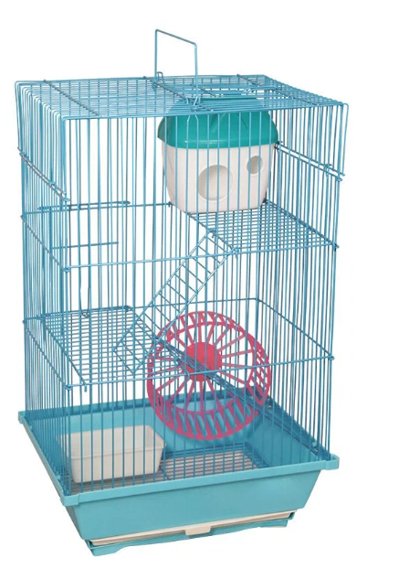 Прямоугольная трехэтажная клетка для грызунов. Эта трехэтажная клетка - удобный и функциональный дом для любого грызуна: он занимает немного места и отлично подходит для мелких домашних животных вроде крыс, мышей и хомяков. В комплектацию изделия также входят: пластиковая миска, уютный домик на третьем ярусе и беговое колесо. Кроме того, клетка оборудована удобной ручкой на крыше, облегчающей процесс переноски изделия.