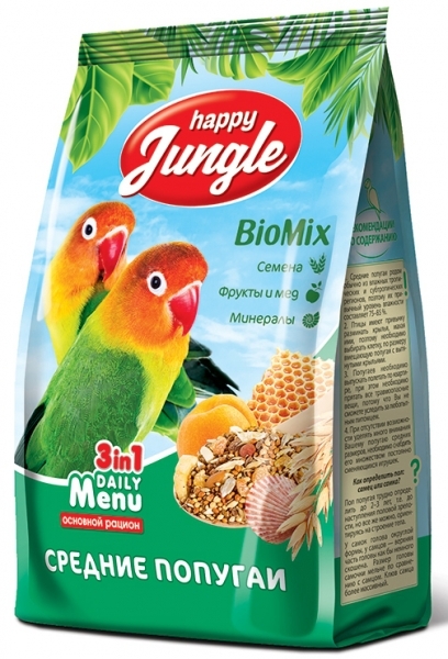 Корм Happy Jungle (Экопром) 3 в 1 BioMix для средних попугаев