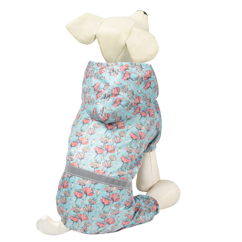 Костюм-дождевик "Маковое поле" - это удобный и функциональный аксессуар для собак, который просто незаменим в дождливую погоду. Изделие защитит шерсть животного от дождя и грязи, а непродуваемая ткань - от сильного ветра. Костюм имеет стильный дизайн, а универсальный фасон не стесняет движений питомца во время прогулки. Особенностью дождевика является светоотражающая лента, идущая по талии изделия, - для повышения безопасности животного на дороге. Дождевик также имеет капюшон и фиксируется при помощи трех заклепок на животе, а на штанинах предусмотрены удобные резинки, препятствующие попаданию грязи и влаги снизу. Длина спины: 450мм; обхват груди: 540мм; обхват шеи: 390мм. Цвет: светло-бирюзовый с оранжевым.