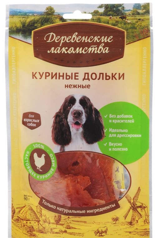 Эти нежные, сочные дольки из куриного мяса высшей категории станут любимым лакомством вашей собаки. Лакомство для взрослых собак средних и крупных пород.