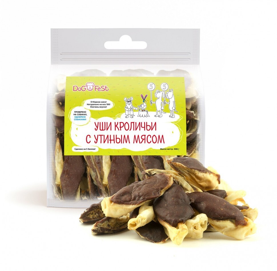 Мясное лакомство для собак Dog Fest "Уши кроличьи с утиным мясом" создано для того, чтобы дарить праздник нашим четвероногим друзьям. Не любите курицу? Вот вам утка! То же безупречное лакомство, но уже с другим вкусом. Взрывной мясной вкус на хрустящем кроличьем ушке. Отборное мясо и 100% натуральный состав дополняются прекрасными вкусовыми качествами. "Dog Fest" - самый вкусный подарок вашему любимцу.