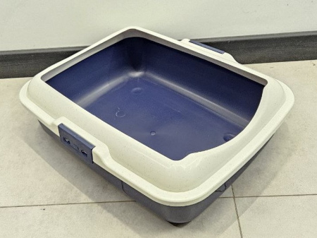 Лоток для кошачьего туалета с ободом "Чистый котик" 50х40х16 синий CAT-L02