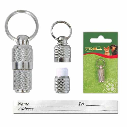 Выполнен из прочного материала. Крепится на ошейник питомца. Внутри вкладыш для записи контактных данных.