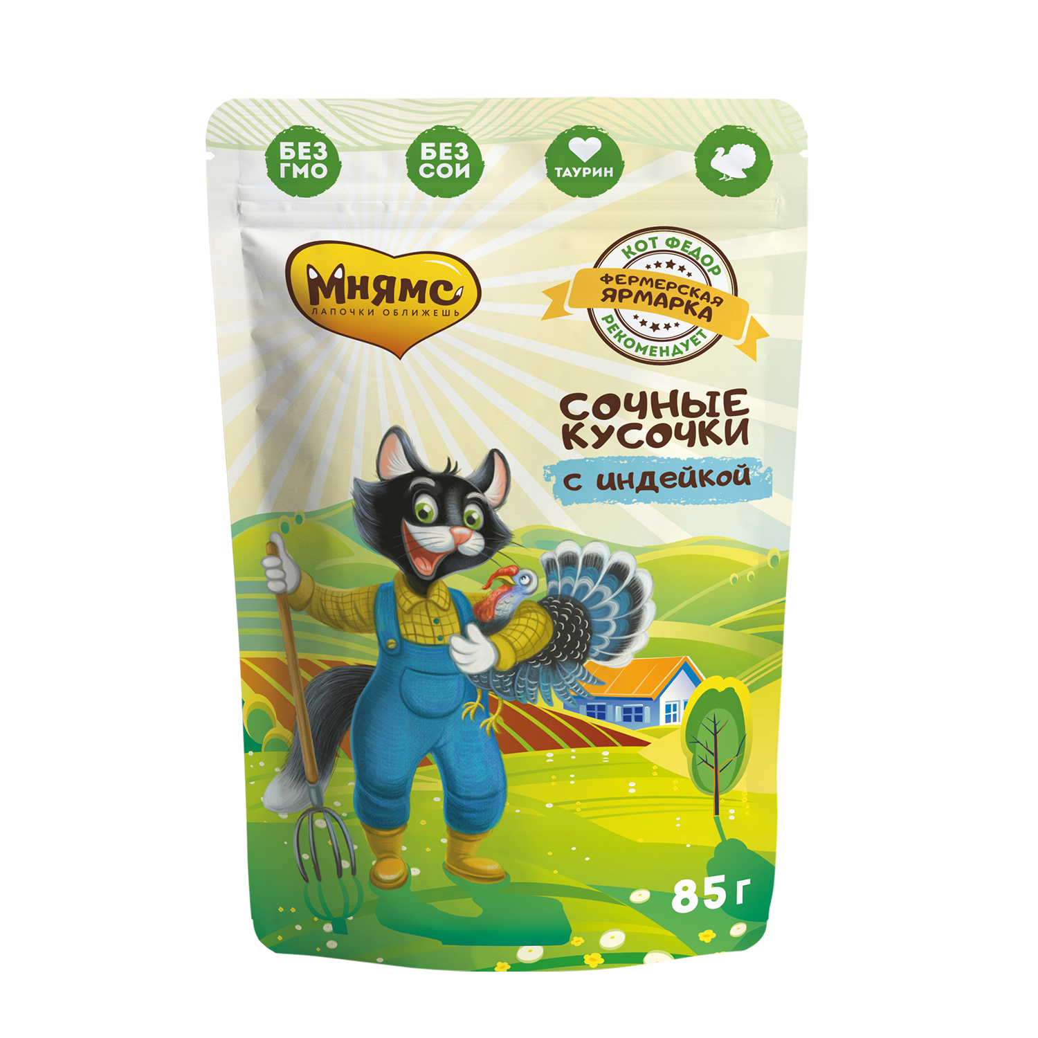 Влажный корм "Фермерская ярмарка" линии Кот Федор - это сбалансированный рацион, который обязательно понравится вашей кошке. Насыщенный вкус индейки в каждом кусочке порадует как активного исследователя, так и домоседа, и позволит почувствовать себя настоящим фермерским жителем. -Без ГМО -Без сои -Без консервантов -Без ароматизаторов -Без усилителей вкуса -Без искусственнх красителей Корма и лакомства от "Мнямс" - для всех, кто умеет любить.