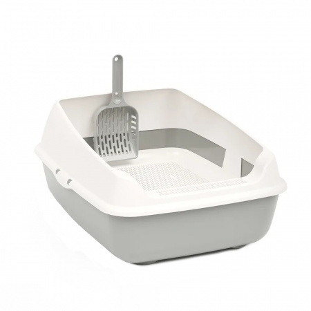 Набор для кошек лоток с высокими бортами, сеткой и совком, серый М8576