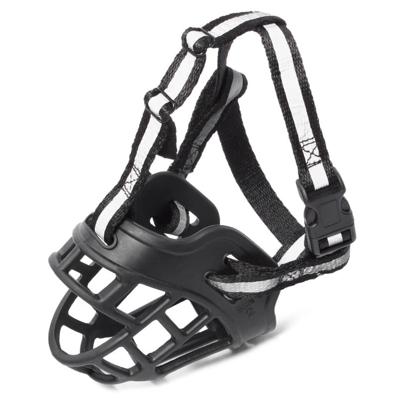 Силиконовый намордник TRIOL изготовлен из прочного, но эластичного материала, что обеспечивает эргономичную посадку по форме морды и удобство питомца. В таком наморднике собака сможет свободно дышать с приоткрытой пастью, пить воду и есть лакомства на прогулке. Дополнительное крепление намордника на голове не позволит самостоятельно снять изделие даже активной собаке. Длина ремней на шее и голове регулируется. Светоотражающие полоски на ремешках сделают прогулку в темное время суток безопаснее.