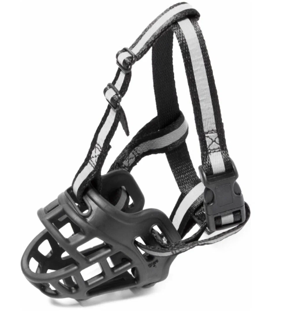Силиконовый намордник TRIOL изготовлен из прочного, но эластичного материала, что обеспечивает эргономичную посадку по форме морды и удобство питомца. В таком наморднике собака сможет свободно дышать с приоткрытой пастью, пить воду и есть лакомства на прогулке. Дополнительное крепление намордника на голове не позволит самостоятельно снять изделие даже активной собаке. Длина ремней на шее и голове регулируется. Светоотражающие полоски на ремешках сделают прогулку в темное время суток безопаснее.