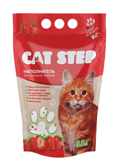 Cиликагелевый наполнитель для кошачьего туалета CAT STEP Arctic Strawberry моментально впитывает влагу и уничтожает запахи. Пористая структура кристаллов обеспечивает их высокую способность к поглощению жидкостей и запахов. Наполнитель препятствует размножению и развитию бактерий и грибков за счет своего неорганического происхождения. Наполнитель не требует постоянного контроля и ежедневной уборки кошачьего лотка. Содержимого пакета 3,8 л хватает в среднем на 1 месяц использования. Содержит красные гранулы c легким ароматом клубники, активирующимся при контакте с жидкостью. Заполните сухой и чистый лоток наполнителем CAT STEP Arctic Strawberry слоем 3-5 см. Регулярно удаляйте экскременты и перемешивайте наполнитель для равномерного распределения свежих кристаллов. Примерно через 4 недели удалите использованные гранулы и замените их новой порцией наполнителя. Не выбрасывайте использованный наполнитель в унитаз. Объем: 3,8 л.