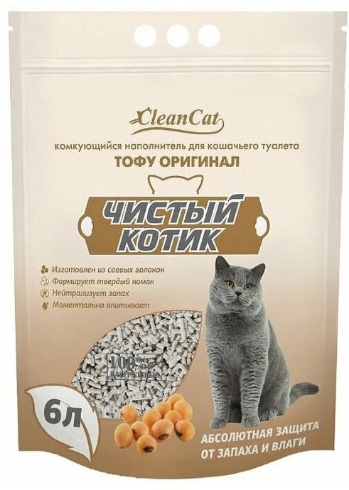 Комкующийся наполнитель «Чистый котик» ТОФУ ОРИГИНАЛ эффективно впитывают влагу: благодаря волоконной структуре при попадании жидкости спрессованные соевые гранулы образуют крепкий комок и надежно запирают запах внутри до 2-х недель. Отсутствие ароматизаторов подойдет для тех, кому не нравятся различные запахи. Наполнитель экономичен в потреблении и значит Ваш лоток надолго будет сухим и чистым. При попадании в канализацию волокна моментально растворяется, а его натуральный гипоаллергенный состав абсолютно безопасен не только для Вас и Вашего питомца, но и для окружающей среды. Состав: спрессованные соевые волокна Инструкция по применению: 1. Перед использованием наполнителя, вымыть и просушить лоток. Наполните лоток наполнителем «Чистый котик» ТОФУ слоем 3-5 см. 2. Регулярно удаляйте твердые отходы животного и загрязненные гранулы. 3. Добавляйте наполнитель по мере необходимости и перемешивайте для равномерного распределения свежих гранул.