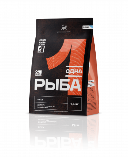рыба 25%, дегидрированная рыба 23%, чечевица, жир животный, рис, гидролизованные мясные белки, дрожжи сухие, семена льна, лецитин, клетчатка, жир лососевый 0,8%, минералы, клюква, цикорий, экстракт юкки, таурин, комплекс витаминов, экстракт розмарина.