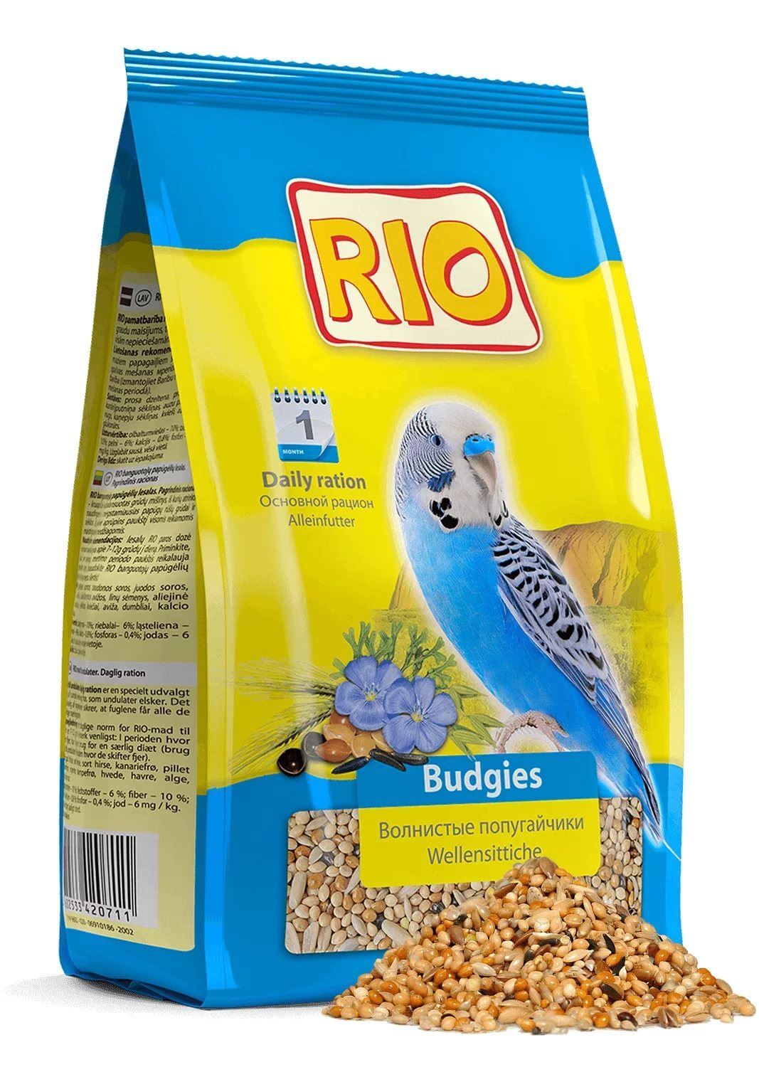 Состав: просо желтое, просо красное, просо черное, канареечное семя, овсянка, семя льна, нуг абиссинский, конопляное семя, пшеница, овес, водоросли, глюконат кальция