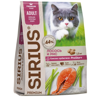 SIRIUS — сухой корм премиум-класса для полноценного ежедневного рациона взрослых кошек. Высокое содержание мясных ингредиентов обеспечивает оптимальный уровень белка и укрепляет мышцы. Баланс витаминов и комплекса пробиотиков 4-го поколения PROSTOR+ нормализует пищеварение и укрепляет иммунитет. Омега 3 и Омега 6 способствуют поддержанию здоровья сердца, мозга, нервной системы, здоровья кожи и красоты шерсти.
