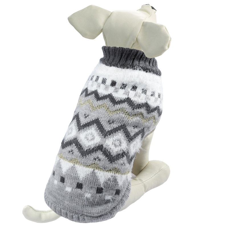 Теплый свитер с узором в виде ромбов - это удобный и функциональный аксессуар для собак, который просто незаменим в холодную погоду. Изделие защитит вашего питомца от ветра и согреет в непогоду. Свитер имеет стильный дизайн, украшением которого служат узоры из золотых нитей, а универсальный и продуманный до мелочей фасон не стесняет движений питомца во время прогулки. Такой свитер с оригинальным узором станет украшением гардероба вашего питомца. Материал: акрил. Цвет: серый. Размер: 35см (L).