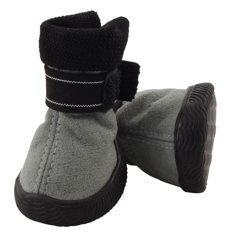 Комплект замшевых ботинок для собак с функциональной прорезиненной подошвой - незаменимый аксессуар индивидуальной защиты лап животного от воздействия агрессивных жидкостей, дорожных химреагентов, бензинов и масел на проезжей части дорог. Прочные, комфортные и непромокаемые, они сохраненяют лапы собаки чистыми и сухими в ненастную погоду и защищают их от истирания о твердое покрытие при длительных и интенсивных нагрузках. Размер изделия: 45х40х55 мм. Цвет: серый.