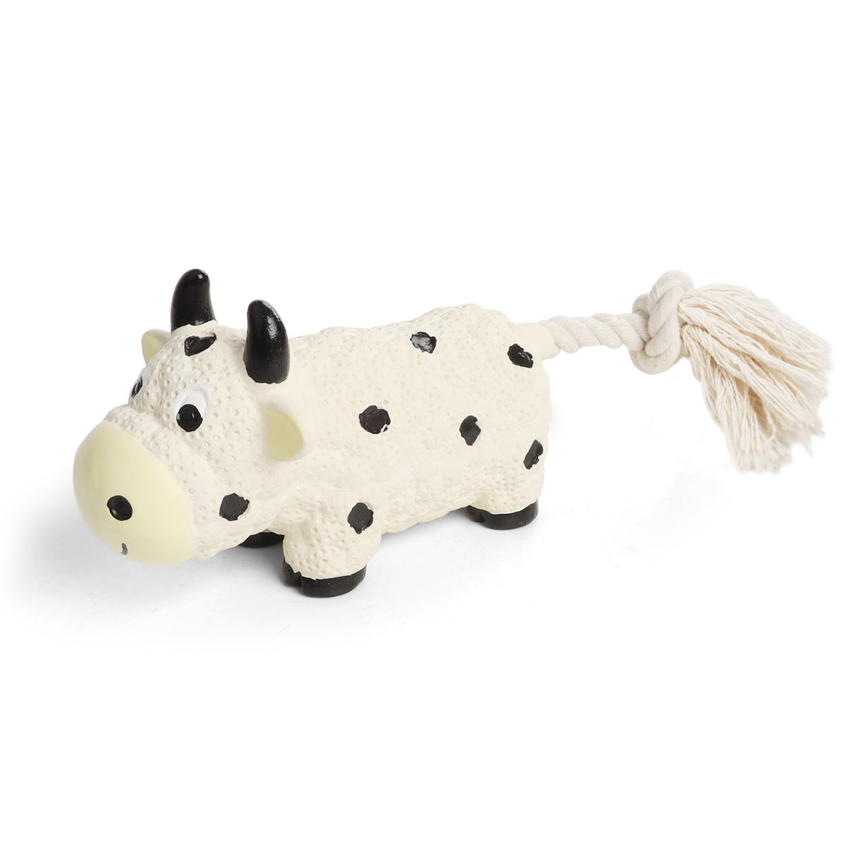 Забавная игрушка "Буренка с верёвкой" изготовлена из латекса - натурального экологически чистого материала, который не содержит токсичных веществ и безопасен для животных. Такая игрушка приятна на ощупь, отлично очищает зубы, массирует десны и помогает собаке снимать стресс в отсутствие хозяина. Благодаря продуманным габаритам игрушку удобно носить в зубах, а мягкая текстура и прочная веревка позволяют питомцу заниматься любимым делом - грызть, кусать и трепать свой трофей. К тому же звонкая "пищалка" внутри изделия пробуждает охотничьи инстинкты животного, делая игру еще интереснее. Цвет: белый. Размер фигурки из латекса: 105*48*60мм, длина веревки: 105мм.