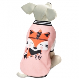 Трикотажная куртка-бомбер "Лисенок-индеец" с флисовой подкладкой и резинками на рукавах и на поясе для комфортных прогулок в прохладную погоду. Изделие украшено оригинальным принтом на спинке. Застегивается при помощи трех заклепок на животе.