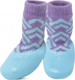 Комплект носков для собак "Орнамент" состоит из четырех изделий, выполненных преимущественно из хлопка с водостойким нитриловым покрытием на подошве. Нитриловое покрытие изготавливают из искусственно синтезированного каучука, пришедшего на смену натуральному латексу. Нитрил не вызывает аллергии, более прочный и износостойкий. Используя такие носочки на улице, Вы защитите лапы собаки от снега, слякоти, реагентов и порезов. В домашних условиях такие носочки ограждают интерьер от когтей любимца и, благодаря противоскользящему покрытию, позволяют четвероногому питомцу с комфортом передвигаться по паркету, кафелю и другим скользким покрытиям. Носочки легко одевать, а благодаря эластичным резинкам они не слезают с лап животного. Изделия просты в уходе и избавят вас от регулярного мытья лап собаке после прогулки. Цвет: сиренево-голубой