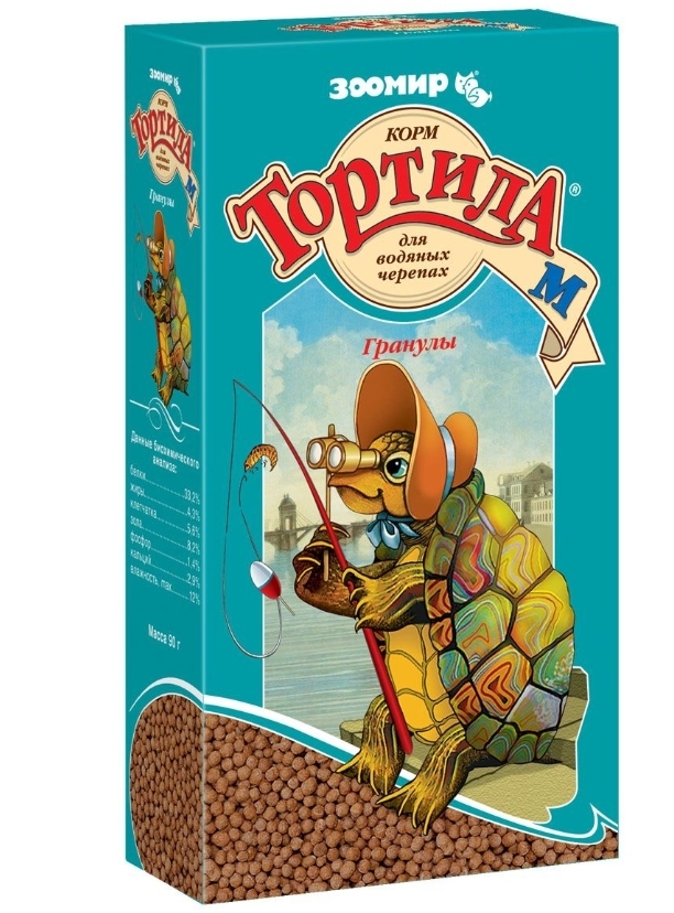 Корм Зоомир Тортила-М 90г послужит замечательным основным питанием для водяных черепах, лягушек, тритонов, ящериц и больших аквариумных рыб. Продукт имеет форму гранул, поэтому легко усваивается организмом питомца. Имеющийся в составе протеин и другие полезные элементы положительно влияют на общее состояние здоровья животного.